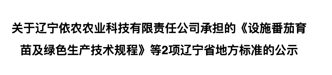 根據(jù)遼寧省地方標(biāo)準(zhǔn)管理辦法(遼農(nóng)監(jiān)[2017]34號)要求,現(xiàn)將遼寧依農(nóng)農(nóng)業(yè)科技有限責(zé)任公司和遼寧省農(nóng)業(yè)科學(xué)院共同承擔(dān)的《設(shè)施黃瓜育苗及綠色生產(chǎn)技術(shù)規(guī)程》征求意見稿和《設(shè)施番茄育苗及綠色生產(chǎn)技術(shù)規(guī)程》等2項遼寧省地方標(biāo)準(zhǔn)進(jìn)行公示,并面向社會征求意見.